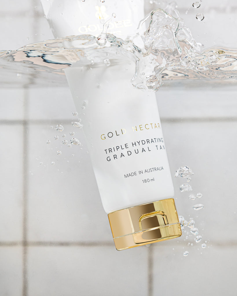 Our Triple Hydrating Gradual Tan applies just like a moisturiser, but dry skin can absorb more product and develop a deeper colour. To avoid uneven results, we recommend exfoliating before application and avoiding dry patches. Take extra care around knees and elbows—lightly glide the product over these areas to ensure a natural, even finish.